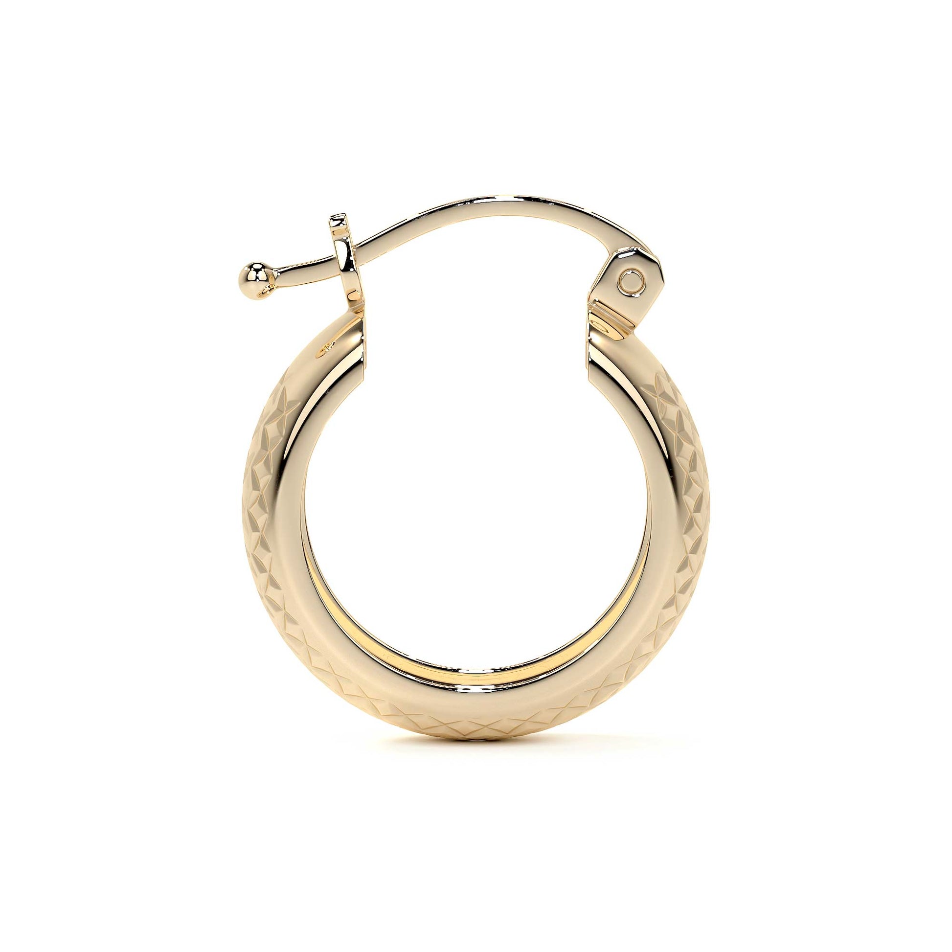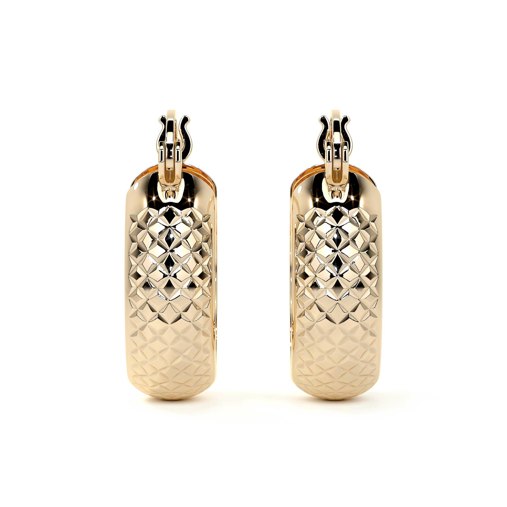 Estas hermosas arracadas Bangle, están elaborados en oro de 10 K, con un acabado texturizado diamantado estilo panal que brinda un brillo sofisticado y llamativo. Su diseño clásico, combinado con un estilo moderno, los convierte en una pieza esencial para cualquier mujer que valore la calidad y la elegancia.