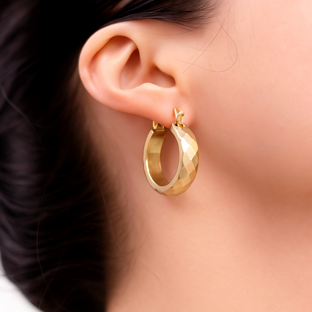 Arracada Bangle Oro 10K te ofrece un toque distintivo y elegante. Su patrón facetado que simula un corte tipo diamante, estos aretes ofrecen un juego de reflejos únicos que elevan cualquier atuendo.Exquisitamente detallada y con una construcción de alta calidad. Con un diámetro de 12 mm y un ancho de 6 mm, esta arracada ofrece la combinación perfecta de presencia y comodidad. Su tamaño proporciona un aspecto destacado, mientras que su ligereza asegura que se pueda usar sin molestias durante todo el día.