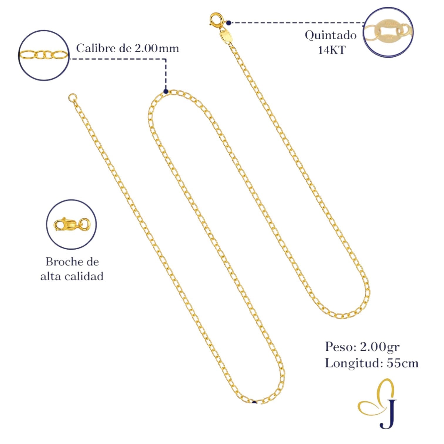 Quilataje: 14K (NO ES CHAPA NI BAÑO DE ORO)