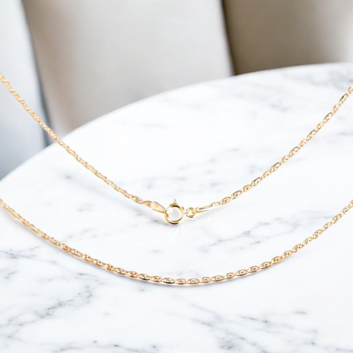 Esta cadena de oro de 10K en estilo Valentino es una pieza única y sofisticada para añadir a cualquier colección de joyería fina. Con su brillante lustre dorado y su diseño italiano clásico, es una joya que sin duda disfrutarás luciendo en todas las ocasiones. Esta pieza te da el equilibrio ideal entre lujo, durabilidad y resistencia ademas de seguridad con su broche de Argolla.Con un calibre de 1.5 milímetros, la cadena es fuerte y duradera, manteniendo al mismo tiempo una apariencia delicada y femenina.---------------------------------------------------------------------------------------------------------ESPECIFICACIONES:**Medida: 55 cm****Peso: 1.8 Gramos****Quilataje: 10K** (NO ES CHAPA NI BAÑO DE ORO)----------------------------------------------------------------------------------------------------------PREGUNTAS FRECUENTES:¿Es muy delicada ? O si aguanta el Uso diario ?R=El producto es de oro italiano de 14k, lo cual lo hace resistente y adecuado para el uso diario. Sin embargo, es importante tener en cuenta que, como cualquier joya, es recomendable tomar precauciones para mantener su belleza y durabilidad.¿Es baño de oro?R=Está hecha de oro auténtico de 10 quilates.¿Expides factura fiscal?R=Si expedimos factura fiscal, mándanos tus datos.¿Puedes compartirme tu email, teléfono o dirección?Por políticas de la plataforma, no podemos proporcionar por este medio ningún tipo de información de contacto externo. Horario de atención es de 10am a 6pm. De Lunes a Sábado.Pregunta tus dudas, te atendemos con mucho gusto !https://listado.mercadolibre.com.mx/pagina/imperialjewlery/