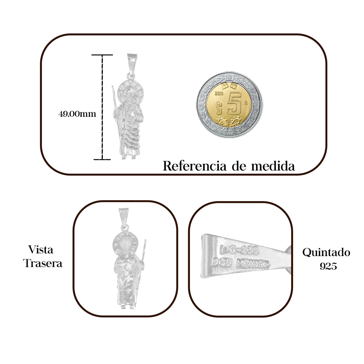 Collar De Plata 925 Con Dije De San Judas 4.9 Cm
