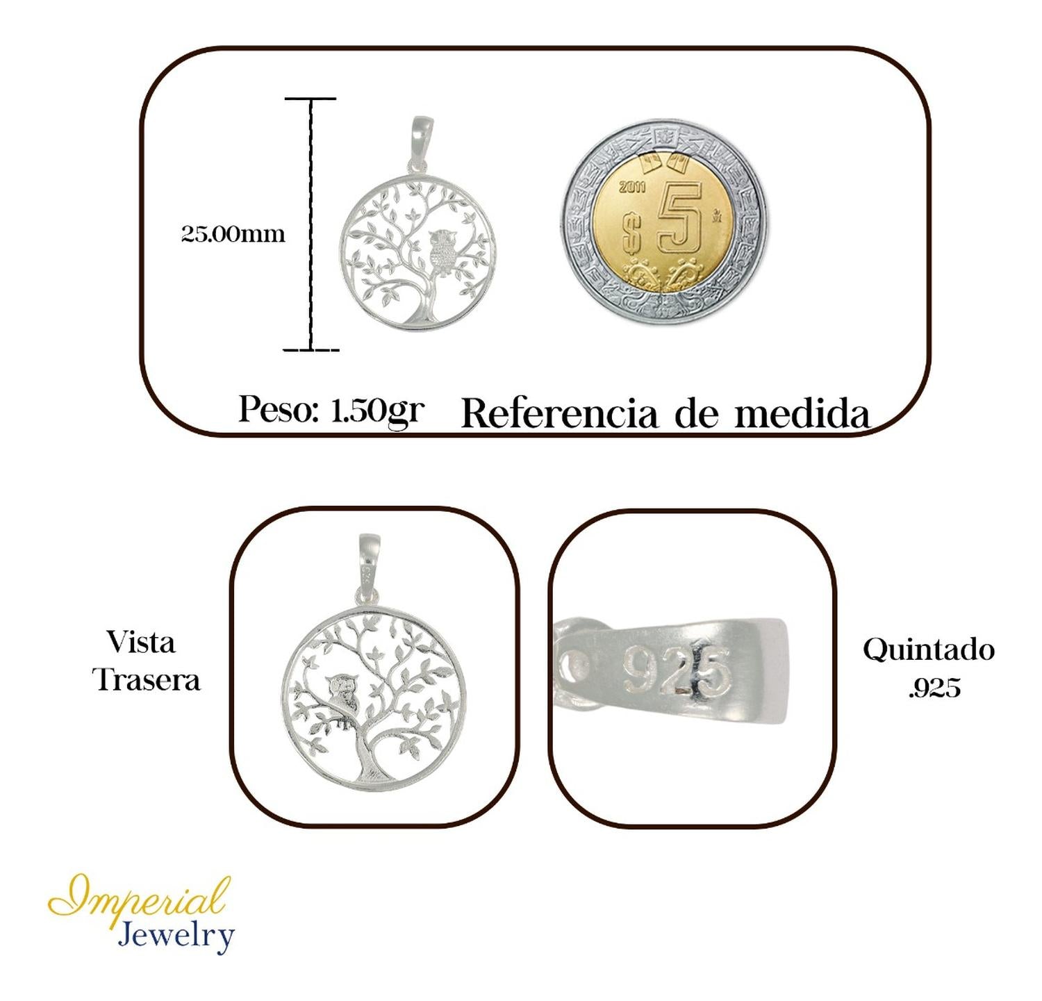 Este Dije de plata 925, elegante. Con un diseño de Arbol y un buho cuidadosamente elaborado, este dije es una pieza sofisticada de joyeria ofreciendo un sutil brillo que lo hace resaltar. En toda ocasion mientras que su peso de 1.6 gr. Refleja la calidad y solidez del material utilizado.