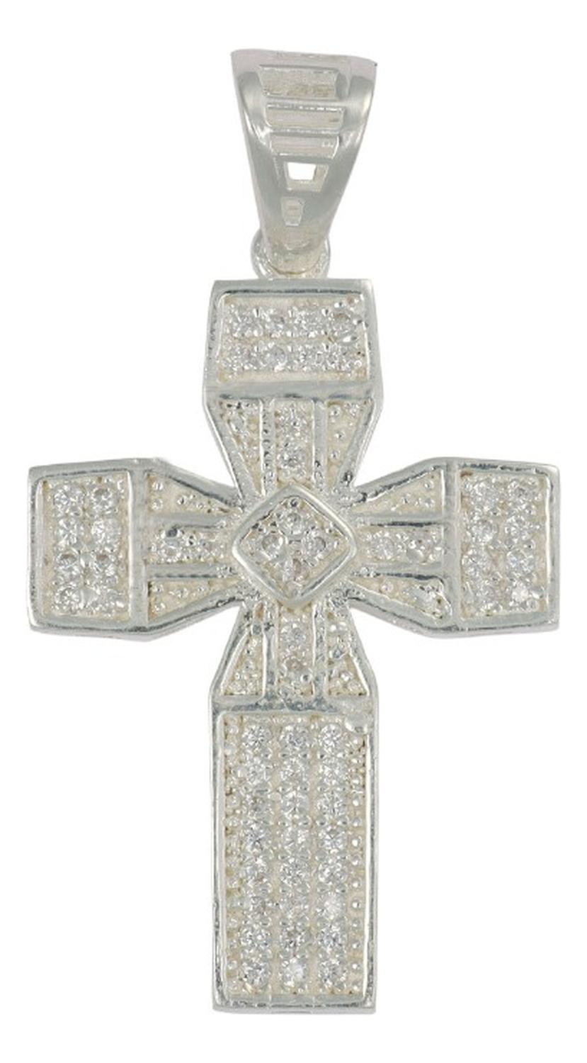 Dije Turco De Plata 925 De Cruz Cuadrada Con Zirconia