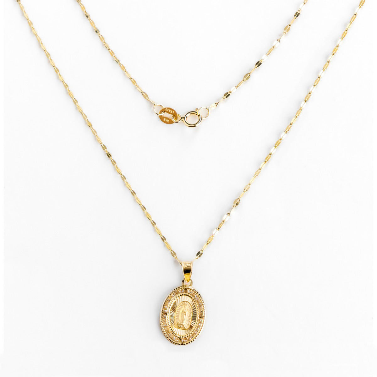 **Peso: 1.5 Gramos****Quilataje: 10K** (NO ES CHAPA NI BAÑO DE ORO)Medalla acional de la virgen de guadalupe con Cadena Grano de Café 10KDescripción:¡Una joya elegante y significativa, perfecta como regalo o para lucir en cualquier ocasión!Características:Medalla: Presenta una delicada imagen de la Virgen de guadalupe Realizada con exquisitos detalles y en oro de 10 quilates.Cadena: Estilo grano de café, amarilla, de 1.5 mm de calibre y 40 centímetros de largo. Oro de 10 quilates, importada directamente de Italia.Peso: La pieza completa pesa 1.5 gramos, lo que garantiza una calidad excepcional sin ser demasiado pesada.Detalles adicionales:La compra incluye la medalla y la cadena grano de café.Envío y Pago:Entrega en todo el país a través de mensajería segura.Aceptamos múltiples formas de pago, incluyendo tarjeta de crédito, débito y Mercado Pago.Tu compra está respaldada por nuestra política de satisfacción garantizada. Si no estás completamente satisfecho, puedes devolverla dentro de los primeros 30 días para un reembolso completo.No pierdas la oportunidad de tener esta pieza única, llena de significado y belleza. ¡Haz tu pedido hoy!https://listado.mercadolibre.com.mx/pagina/imperialjewlery/