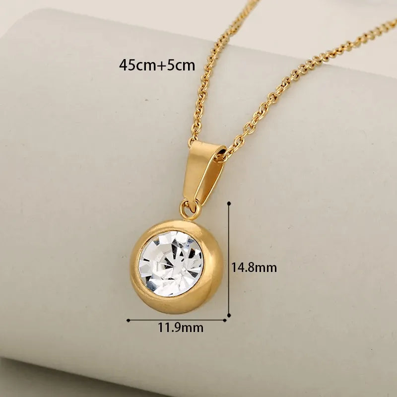 Collar y Aretes Acero Inoxidable Circonita Cubica Blanca Chapa Oro 10k 304L Calenbi