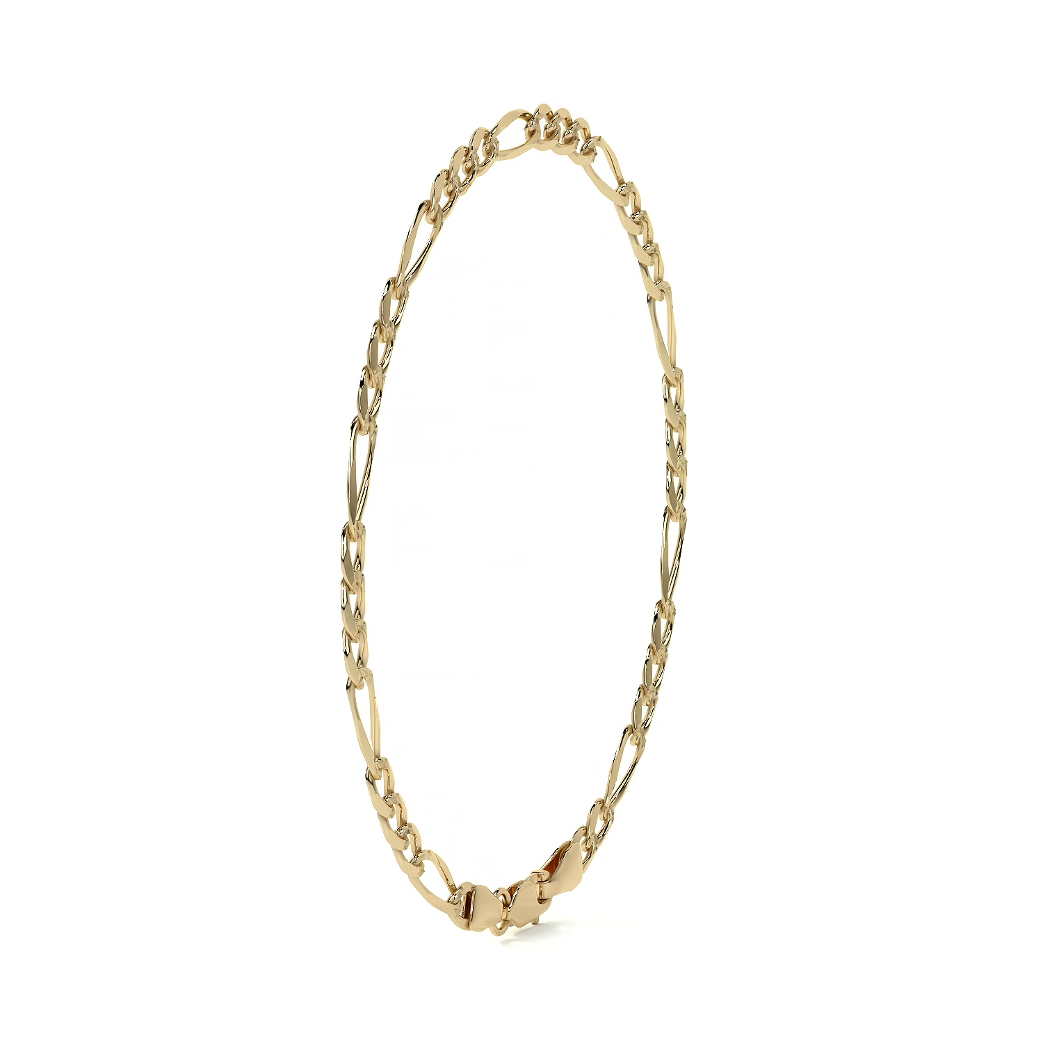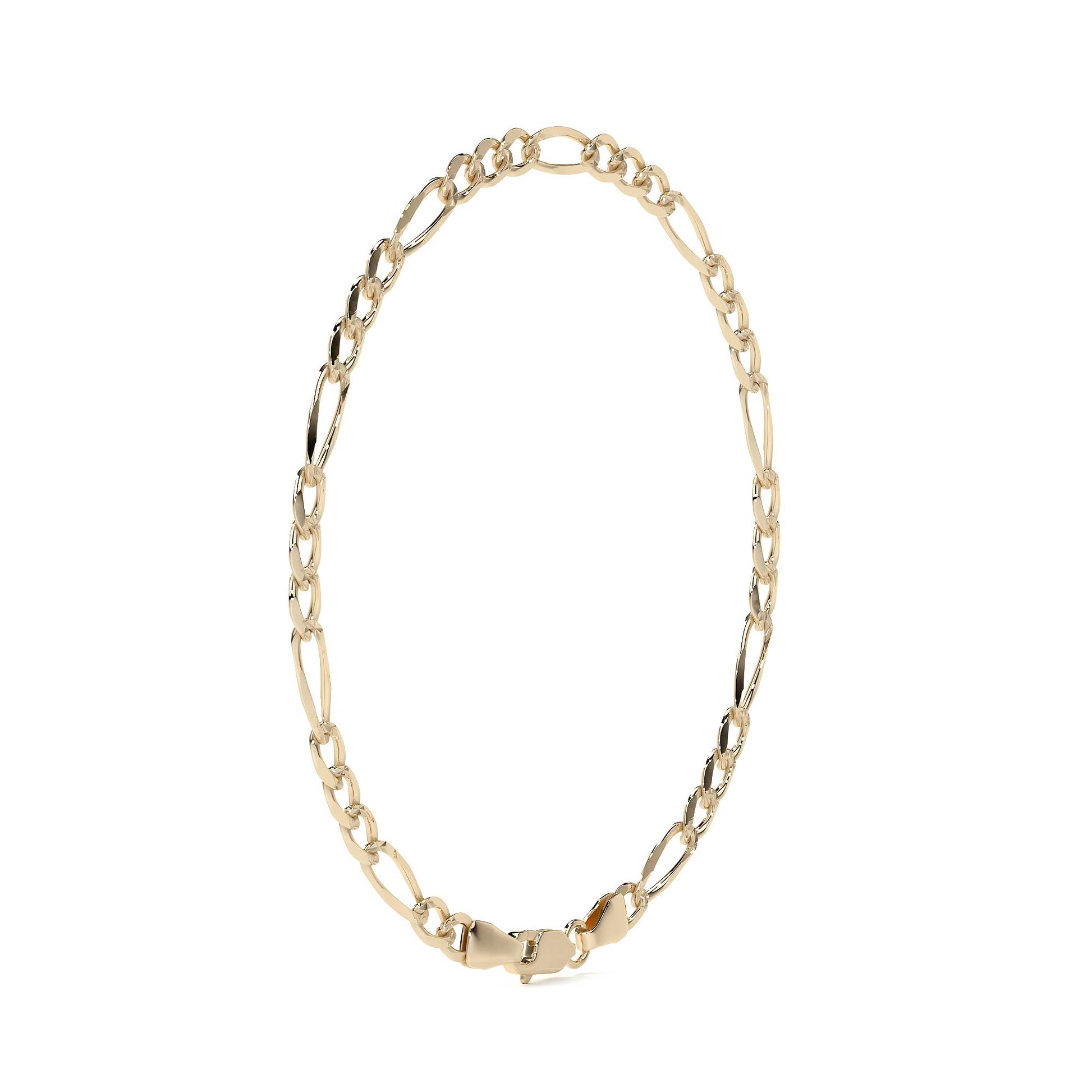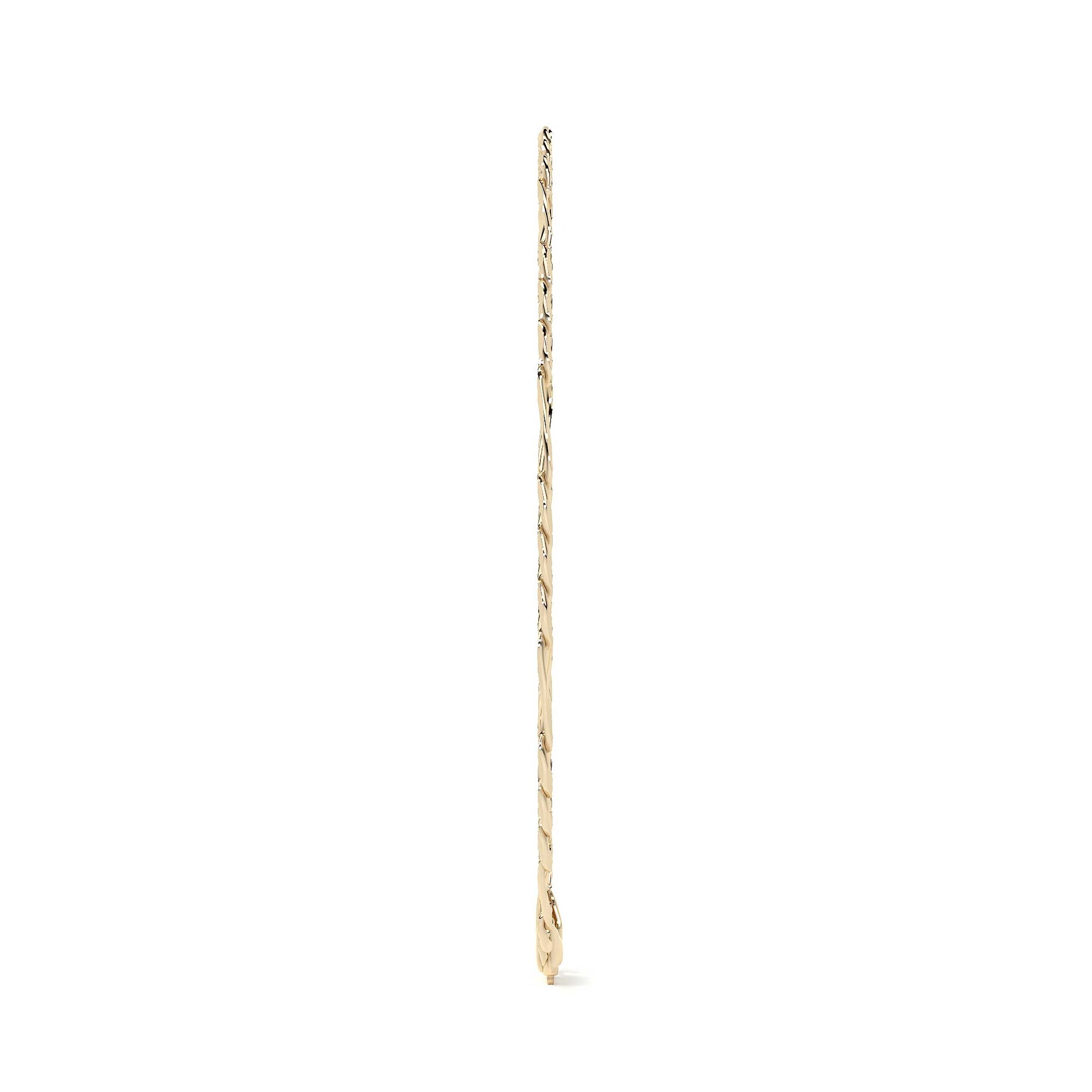 El estilo Figaro 3x1, compuesto por tres eslabones cortos y uno largo, proporciona una estética elegante y bien definida. Con un calibre de 5.3 mm, esta pulsera ofrece una presencia robusta y sofisticada, ideal para el uso diario sin perder elegancia.