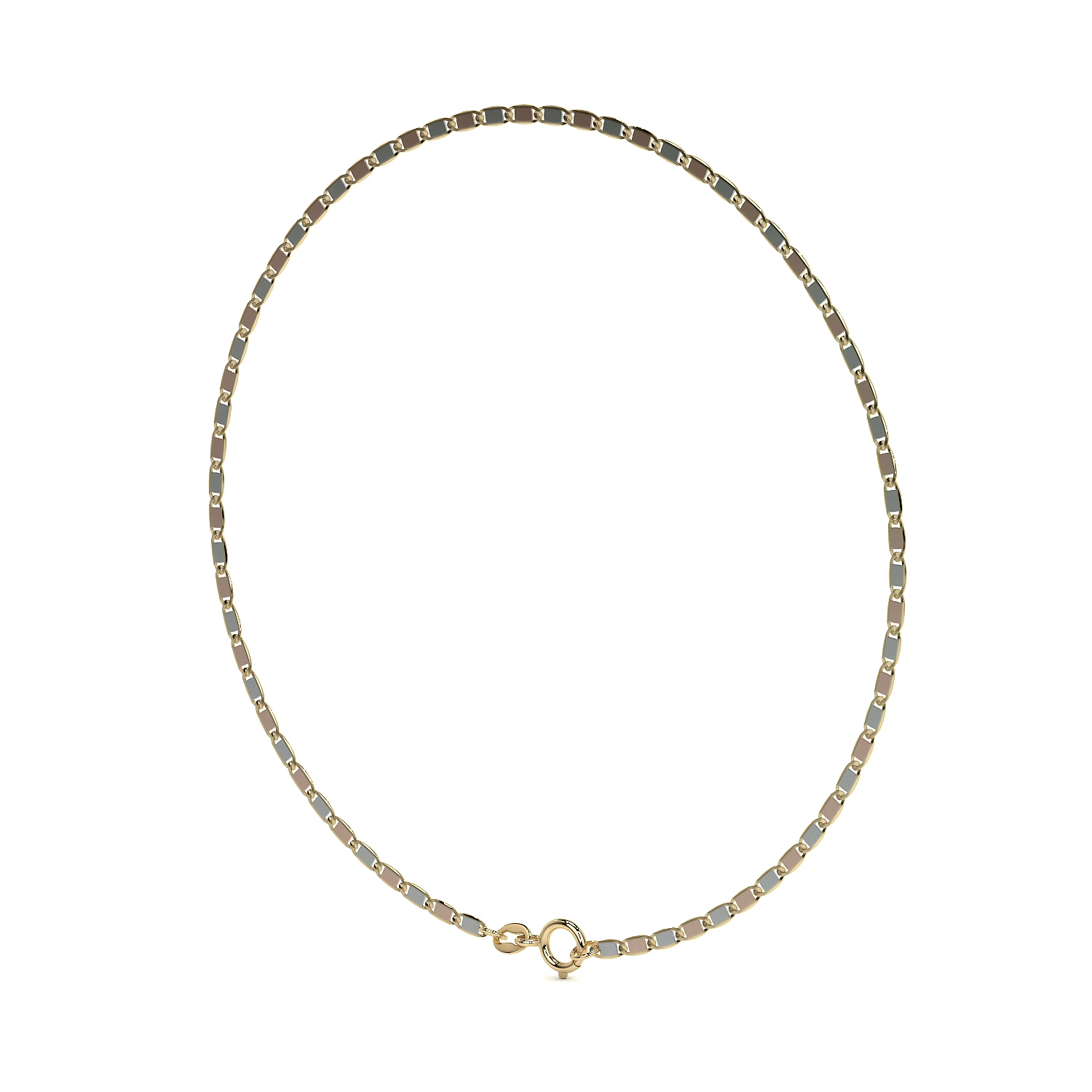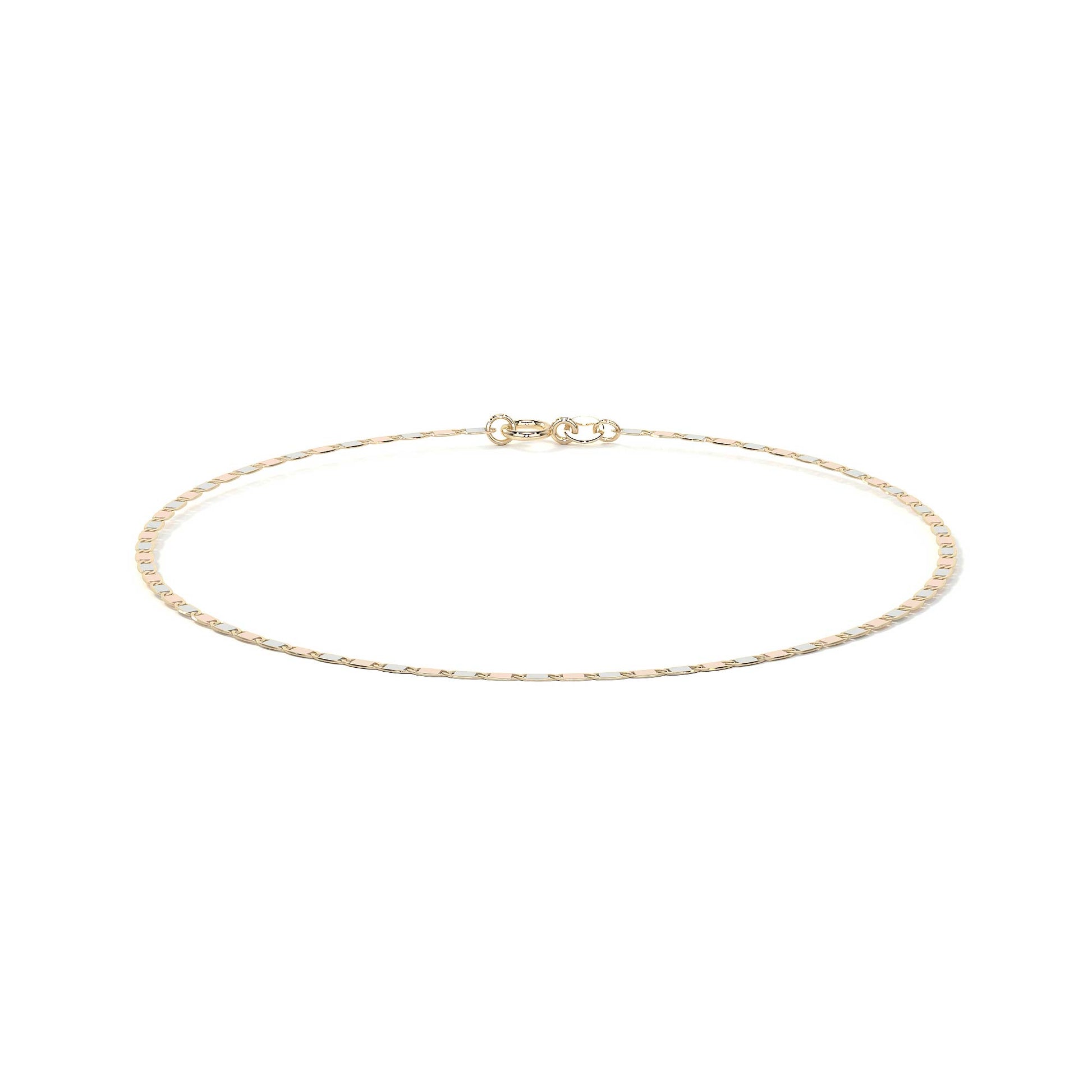 Con un calibre de 1.4 mm, longitud de 18 cm y peso aproximado de 1.0 gramo, es una pulsera ligera, cómoda y refinada, ideal para uso diario. Incorpora un broche de argolla, seguro y fácil de colocar, perfectamente integrado al diseño de la cadena.