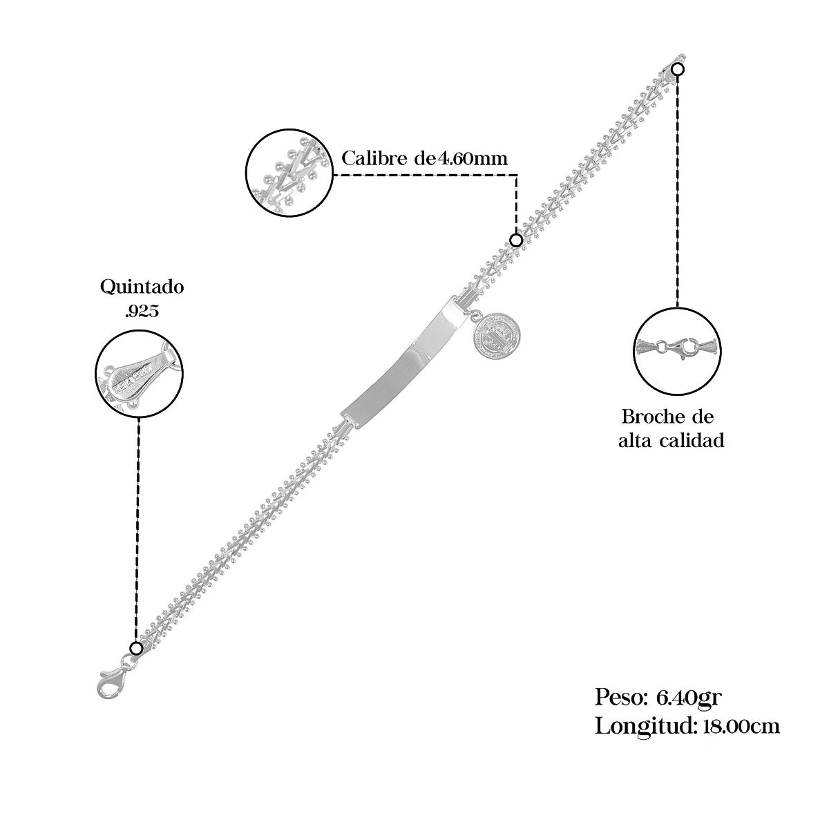Pulsera de Plata 925 Estilo Petatillo/BoleadoPresentamos nuestra pulsera de plata 925 con medalla de San Benito en el elegante estilo petatillo, también conocido como boleado. Esta joya demuestra la delicadeza y maestría de la joyería artesanal.Medida: 18 CMPeso: 6.2 GramosAncho: 4.6 MMMedalla: San BenitoEstilo: Petatillo/BoleadoCaracterísticas:Material: Esta pulsera está hecha de plata 925 de alta calidad, ofreciendo un equilibrio ideal entre lujo, durabilidad y resistencia. La plata 925 mantiene un brillo radiante que perdura a lo largo del tiempo.Estilo: La pulsera presenta el diseño petatillo/boleado, caracterizado por sus detalles entrelazados que crean una textura y un brillo únicos. Este estilo aporta un toque de sofisticación y elegancia a cualquier look.Calibre: Con un ancho de 4.6 milímetros, la pulsera es fuerte y duradera, manteniendo al mismo tiempo una apariencia delicada y femenina.Longitud: 18 centímetros.Hecha a mano: Cada pieza es minuciosamente armada por talentosos artesanos, garantizando la más alta calidad y detalle en cada pulsera.Autenticidad: Cada pulsera viene con un certificado de autenticidad que garantiza su pureza y calidad. El broche de la cadena está marcado con la plata 925, confirmando que estás adquiriendo una joya auténtica de calidad excepcional.Esta pulsera de plata 925 en estilo petatillo/boleado es una pieza única y sofisticada para añadir a cualquier colección de joyería fina. Con su brillante lustre y su diseño artesanal, es una joya que sin duda disfrutarás luciendo en todas las ocasiones.https://listado.mercadolibre.com.mx/pagina/imperialjewelry/