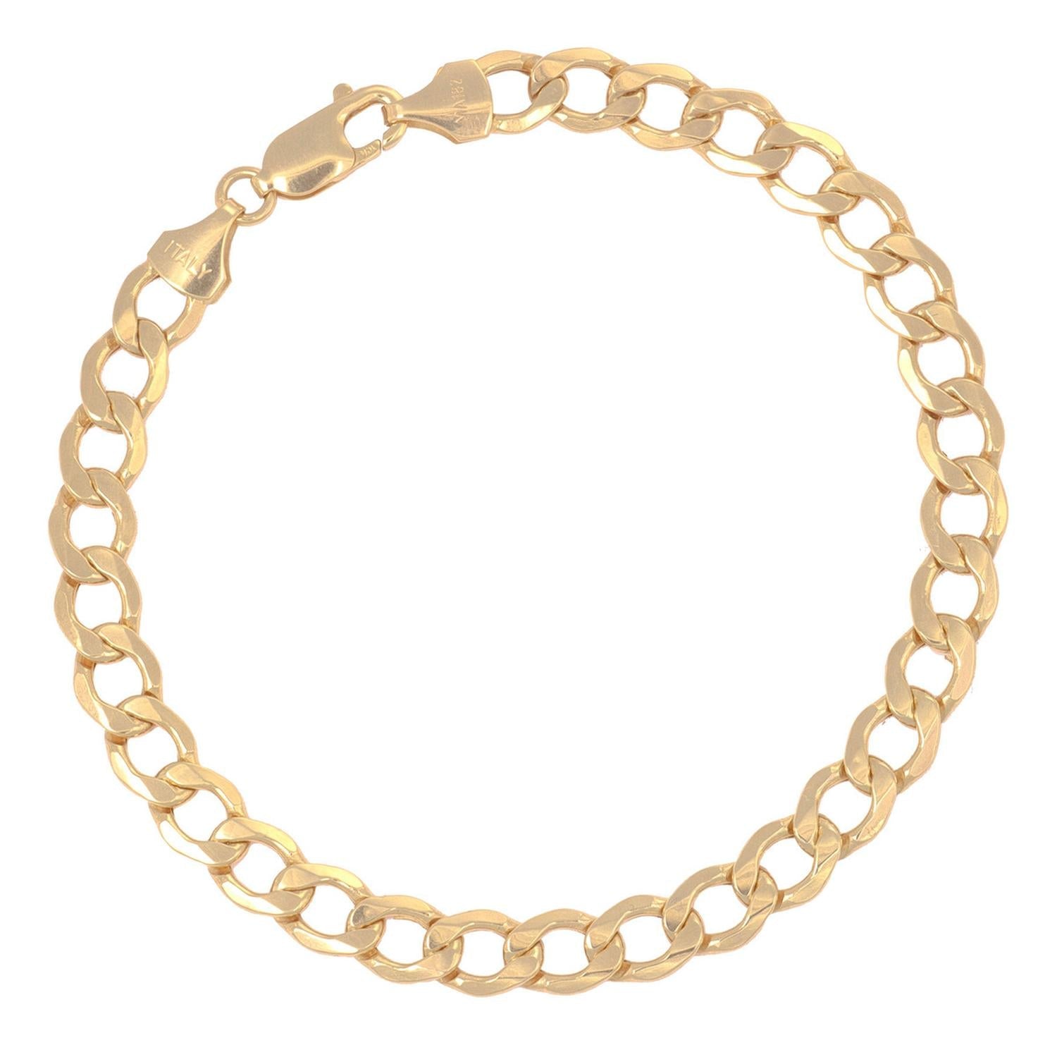 Esta pulsera de oro italiano de 10 quilates es una adición perfecta para cualquier colección de joyería fina. Con su brillo dorado y su diseño clásico cubana o barbada, añadirá un toque de elegancia a cualquier look.