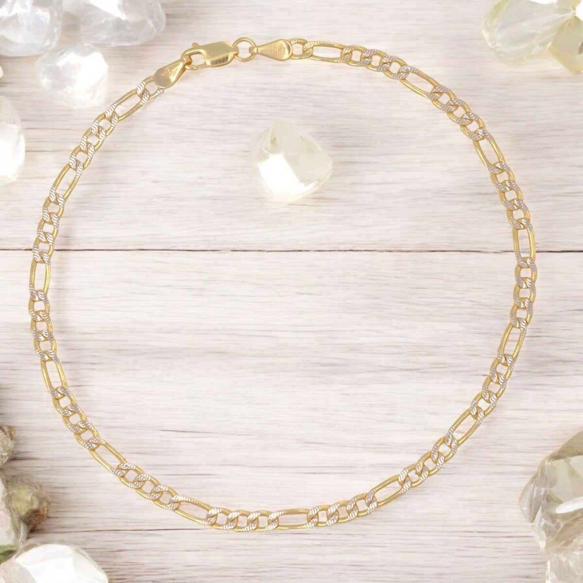 Esta esclava de oro italiano de 10 quilates es una adición perfecta para cualquier colección de joyería fina. Con su brillo dorado y su diseño clásico Figaro esta pulso de oro añadirá un toque de elegancia a cualquier look.----------------------------------------------------------------------------ESPECIFICACIONES:**Medida: 21.5 CM**Peso: 2.4 Gramos**Quilataje: 10K (NO ES CHAPA NI BAÑO DE ORO)**Estilo: Diseño Figaro 3x1, una clásica configuración italiana de eslabones que combina tres eslabones cortos con uno más largo.**Calibre: La pulsera tiene un calibre de 3.2 milímetros.**Longitud: La pulsera mide 21.5 centímetros.----------------------------------------------------------------------------PREGUNTAS FRECUENTES:¿Es muy delicada ? O si aguanta el Uso diario ?R=El producto es de oro italiano de 10k, lo cual lo hace resistente y adecuado para el uso diario. Sin embargo, es importante tener en cuenta que, como cualquier joya, es recomendable tomar precauciones para mantener su belleza y durabilidad.¿Es baño de oro?R=Está hecha de oro auténtico de 10 quilates.¿Expides factura fiscal?R=Si expedimos factura fiscal, mándanos tus datos.¿Puedes compartirme tu email, teléfono o dirección?Por políticas de la plataforma, no podemos proporcionar por este medio ningún tipo de información de contacto externo. Horario de atención es de 10am a 6pm. De Lunes a Sábado.Pregunta tus dudas, te atendemos con mucho gusto !https://listado.mercadolibre.com.mx/pagina/imperialjewlery/