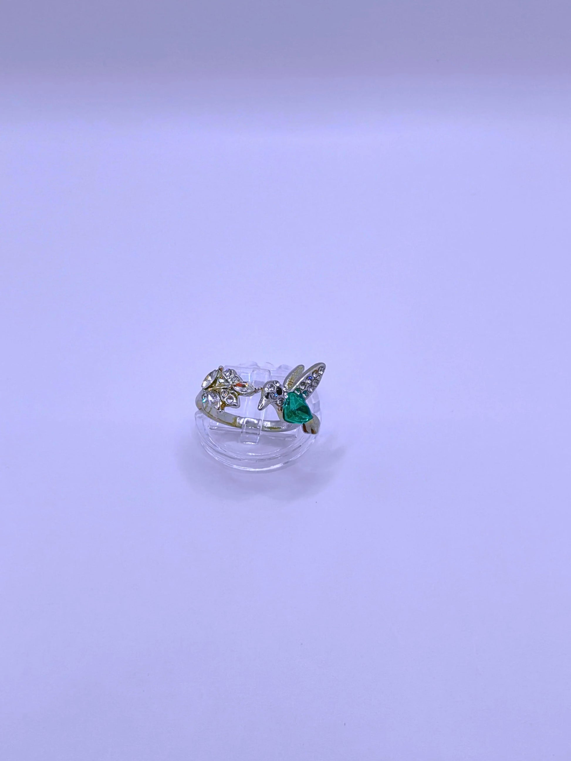 Anillo de aleación de zinc con diseño de colibrí. Ajustable para adaptarse cómodamente a cualquier medida. Ideal para look delicado y natural, perfecto para uso diario.