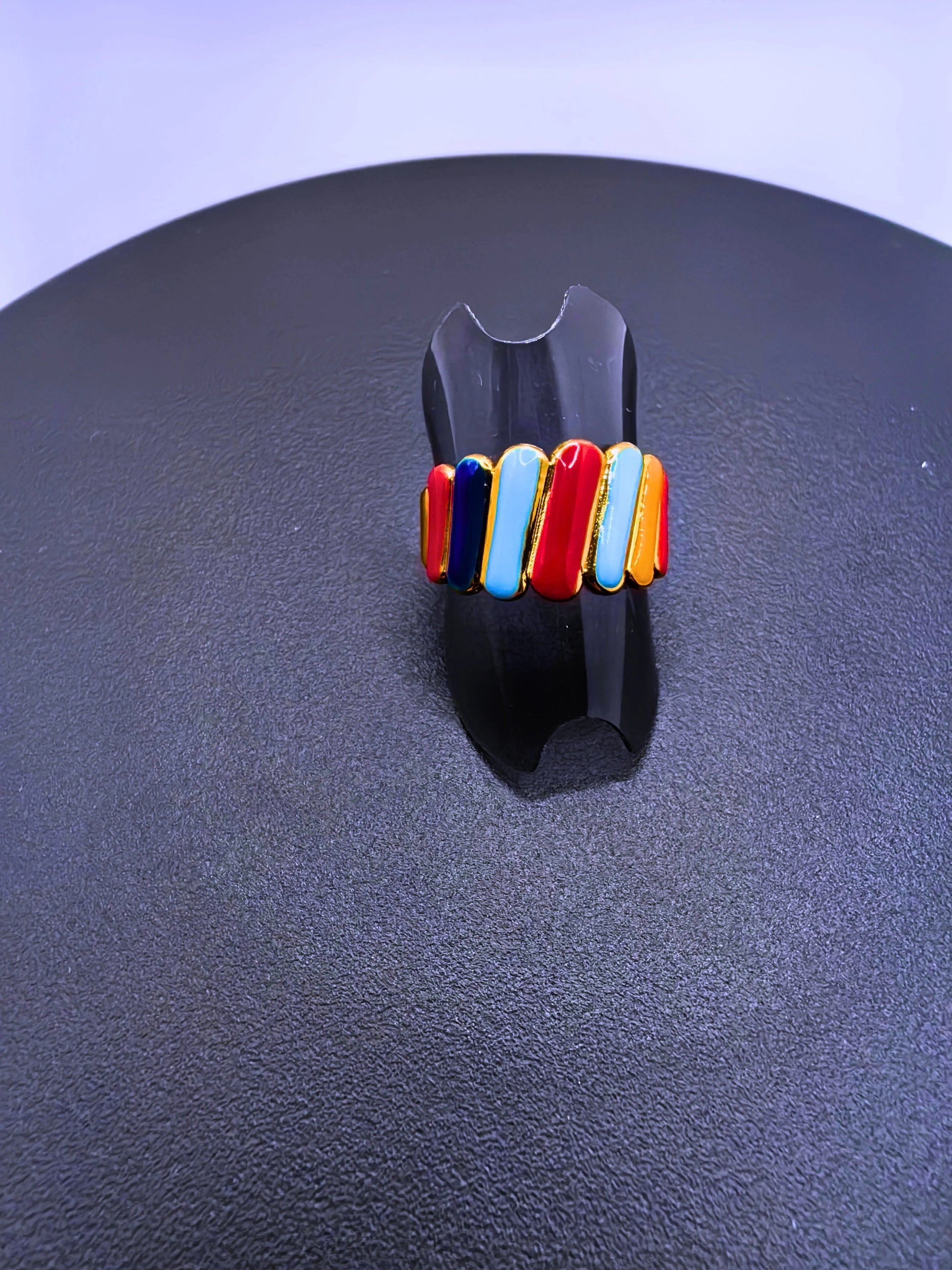 Anillo ajustable de acero inoxidable con baño de oro 14k que combina durabilidad con elegancia atemporal. Diseño moderno realzado con figuras en resina epoxica que añaden textura y personalidad única a cada pieza. Perfecto para quien busca joyería versátil que transita del día a la noche sin comprometer el estilo. Su ajustabilidad garantiza comodidad en cualquier momento, mientras que los materiales de calidad aseguran resistencia y brillo duradero. Una inversión en accesorio que refleja tu gusto por lo contemporáneo y sofisticado.