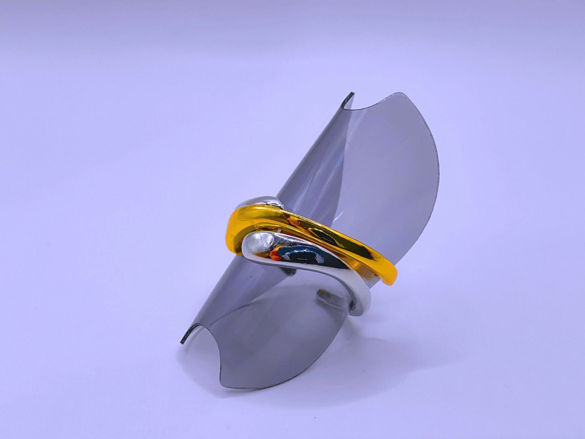 Anillo doble de acero inoxidable con baño de oro 10k. Diseño moderno y elegante que garantiza durabilidad y brillo. Ideal para look sofisticado y versátil, perfecto para uso diario.