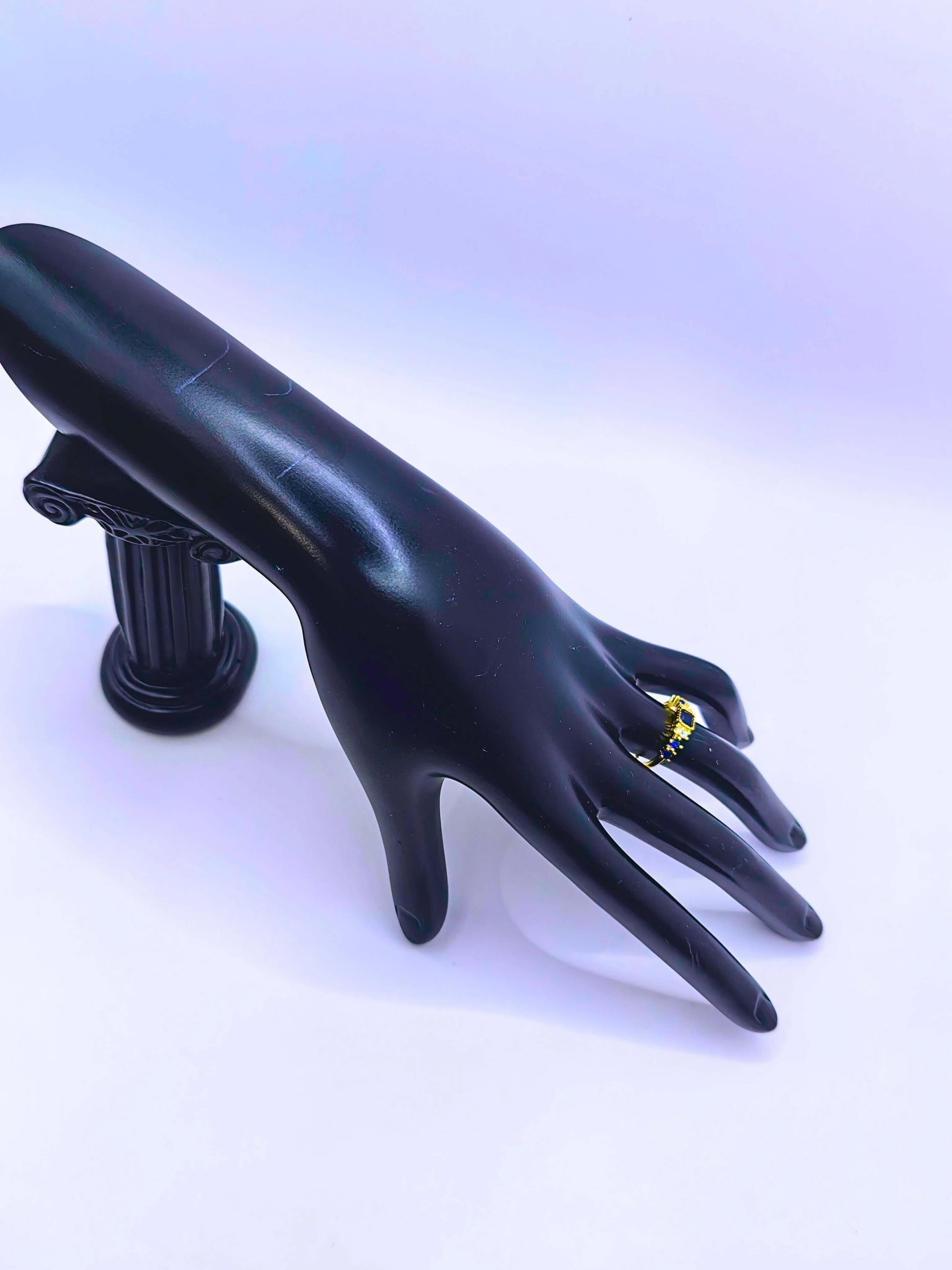 Anillo S925 Ley Circonita Azul Marino "Mirada de Reyna" Chapa Oro 12K Calenbi