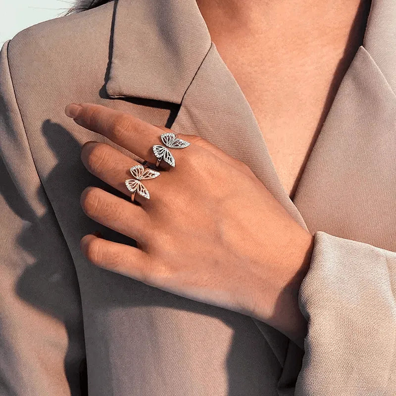 Anillo S925 Ley Mariposa Ajustable Chapa Oro 10k Calenbi